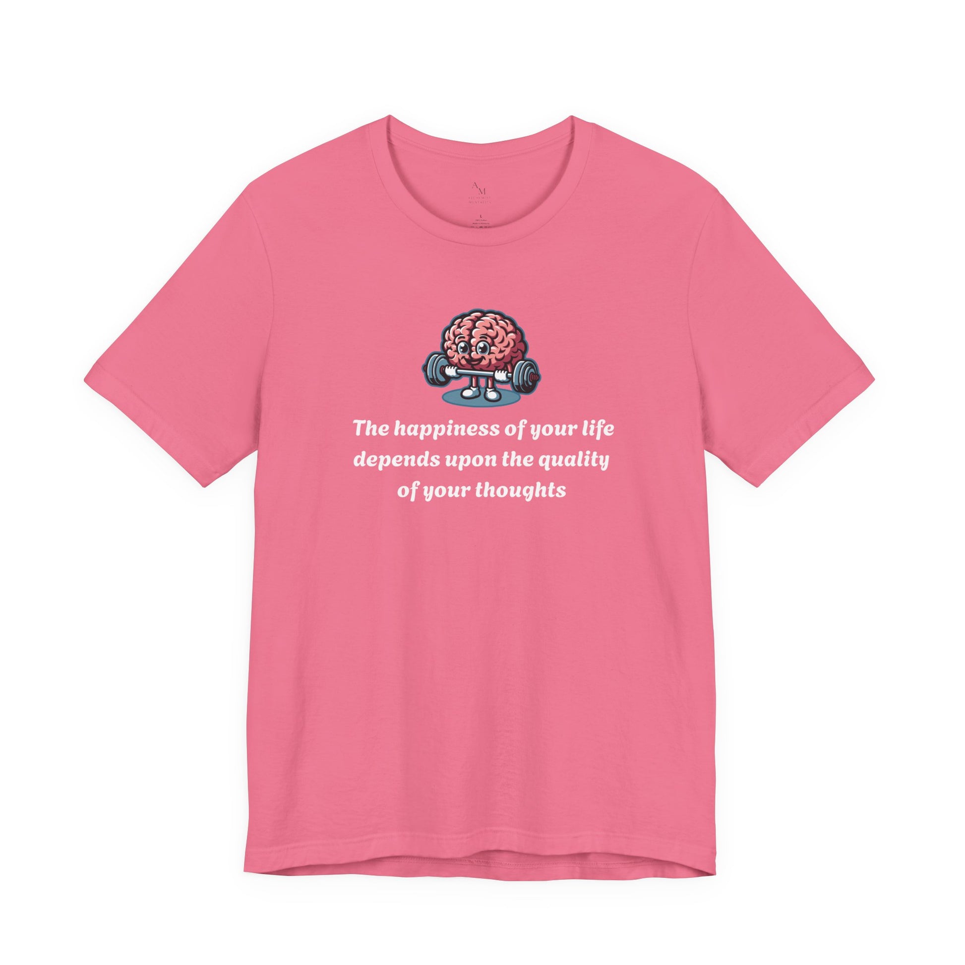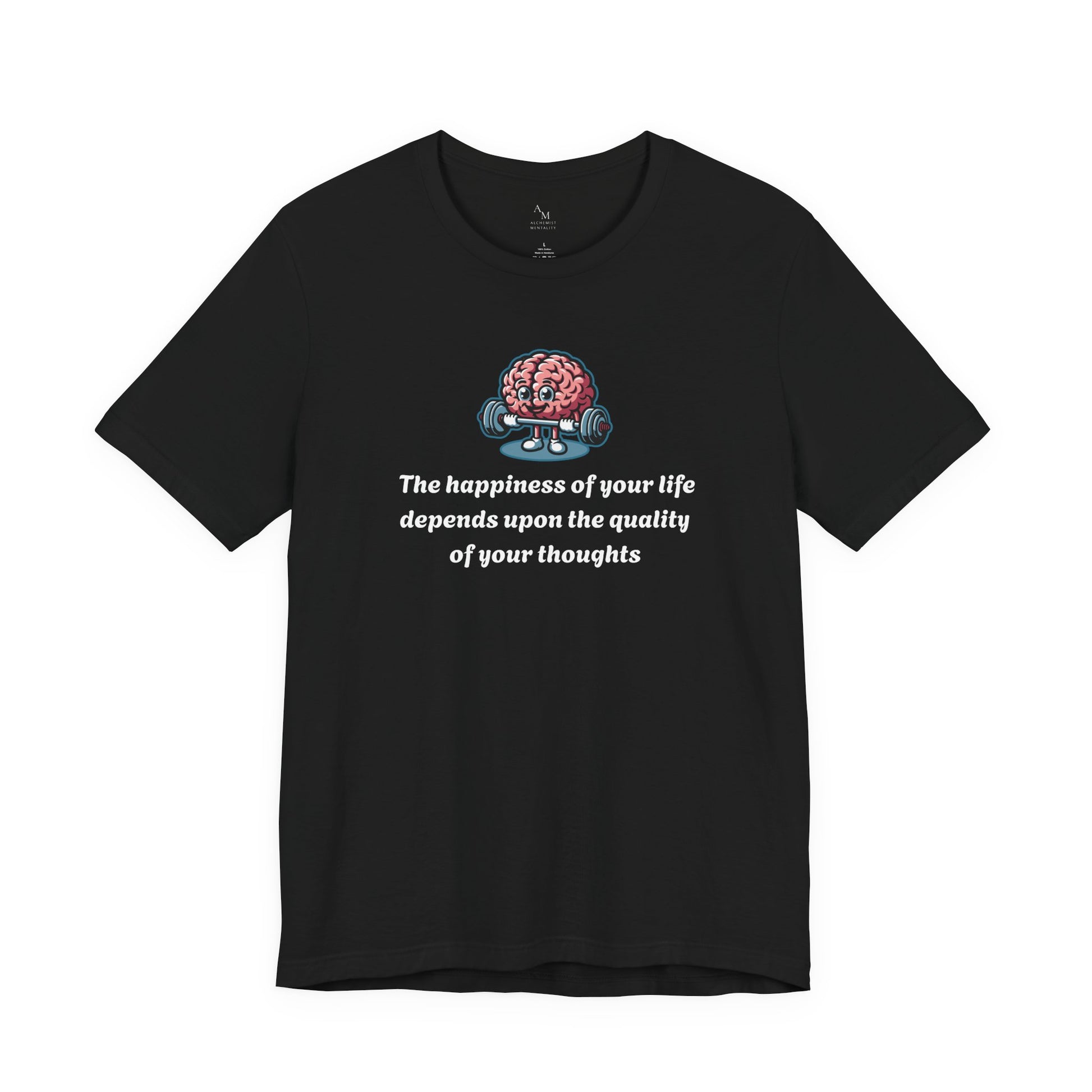 Train your mind like a muscle. Beautiful design featuring the powerful stoic quote "The happiness of your life depends upon the quality of your thoughts." A daily reminder to protect your mindset, choose better thoughts, and strengthen the beliefs that shape your life.